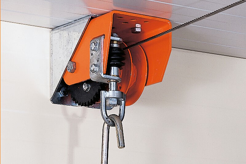 - кабельная лебедка для монтажа к стене включая приводную рукоятку с допустимой нагрузкой в 350, 650 либо 900 кг