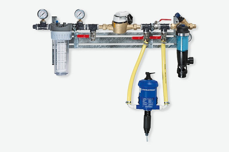 Помимо самой поилки в состав современной системы поения входит и узел водоподключения. Он устанавливается на участке между сетью водоснабжения и линиями поения и может состоять из различных компонентов, которые комбинируются в соответствии с вашими требованиями. Допустимые параметры давления воды настраиваются с помощью регулятора давления.